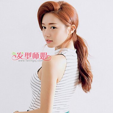 侧编松散马尾辫子,应和女生的甜美时尚,额头上方刘海部分精心制作,令女生的气质有所增加,让你领略到女生的婉约文静气息,凸显出你意想不到流行,瞬间达到最佳效果发型。