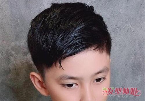 男童剃鬓角偏分定位烫发型