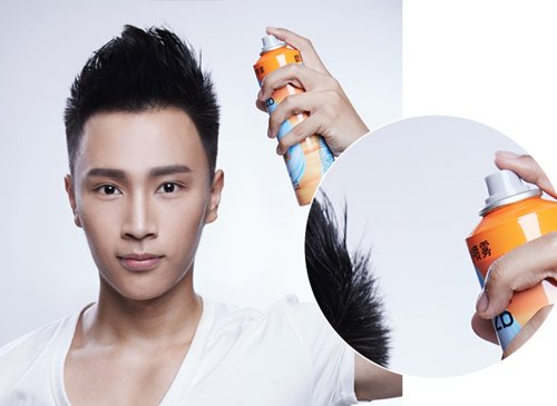 定型喷雾其实是可有可无的,男生们选择的种类也都不一样。距离头型十厘米以上,比发顶高一些的位置喷,喷雾会落的更加匀称。