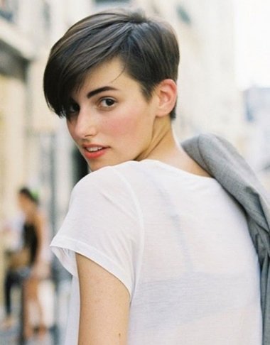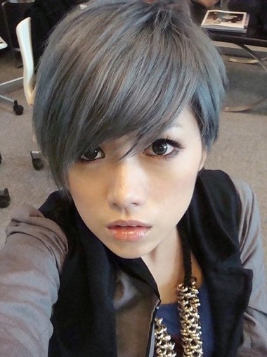 大片斜刘海部分,将女学生的帅气打造而出,短头发是修剪出层次效果,视觉上给人酷风范梳发,额头上方斜刘海部分更加迷人,有着女孩率真一面存在的发型。
