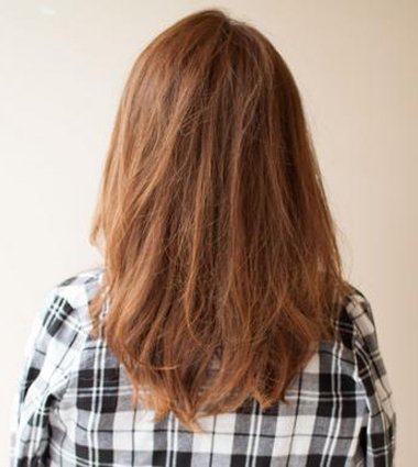 女生后梳焦糖棕色中长发发型
