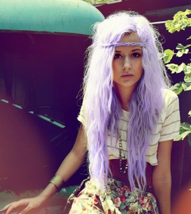 发根上的头发用深褐色来制作,发尾的头发则是亮色系染发,紫色银白色的结合,让这款发型都放佛是透着星光一样。女生中分的烫泰迪卷发型,头发长这样的渐变色才更完美。