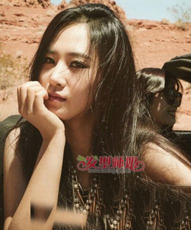 超柔顺的头发,梳在背后面,长的头发剪出层次头发,染出的棕色头发适合她肌肤,在灯光照射下格外迷人,并使两侧头发具有协调度造型,具有别样光彩的女生披散发,温馨度很好的打造出来发型设计。
