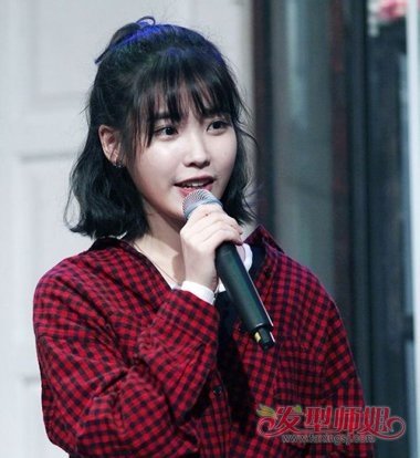 轻薄修剪的刘海发丝遮盖住光洁的头这样额头高一点也看不出来了,这款短发将两侧耳前的发丝向上梳理做成小丸子发髻,发尾部分有着上翘的设计,很灵动可爱的造型。