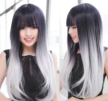 女生怕新长出来的刘海颜色与染发不搭,一开始就不要染太过个性的发色,从耳朵位置开始往下进行漂染,弄成黑色渐变灰色发型,这样刘海怎么生长,也不会破坏发型的整体效果了。