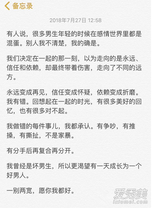 7月27日,欢娱影视发声明辟谣,称上述传言为不实传言,并要求相关方立即停止造谣传谣,否则将追查到底。对于这样的言论暂且不说真假,许凯自己发的声明则是:有人说很多男生年轻的时候在感情世界里都是混蛋。别人我不清楚,我的确是。我做错的每件事儿,我都承认,有争吵,有推搡,有撕扯,不是家暴。