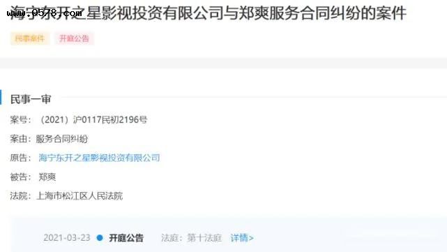 据悉,这则裁定书中的上诉人(原审被告)是郑爽,被上诉人(原审原告)是海宁东开之星影视投资有限公司的执行董事。