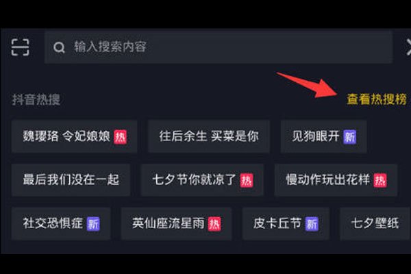 要是有人不知道抖音热搜从哪里看起的话,现在可以教大家一下,首先我们要打开抖音短视频这款APP,进入抖音后在推荐视频播放界面中找到左上角的“搜索”点击,这时候大家会发现搜索界面下方会出现“抖音热搜”的字样,下面就是大家热搜比较多的话题视频了,而在“抖音热搜”这几个字的最右边还会有“查看热搜榜”,点开“查看热搜榜”大家就可以看到完整的热搜排行啦。