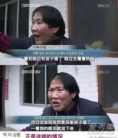 一个老奶奶的采访:“我听说那边房子塌了,就过去看热闹,没想到是我的房子塌了,一下子我的眼泪就下来了”配上图真是又惨又好笑。