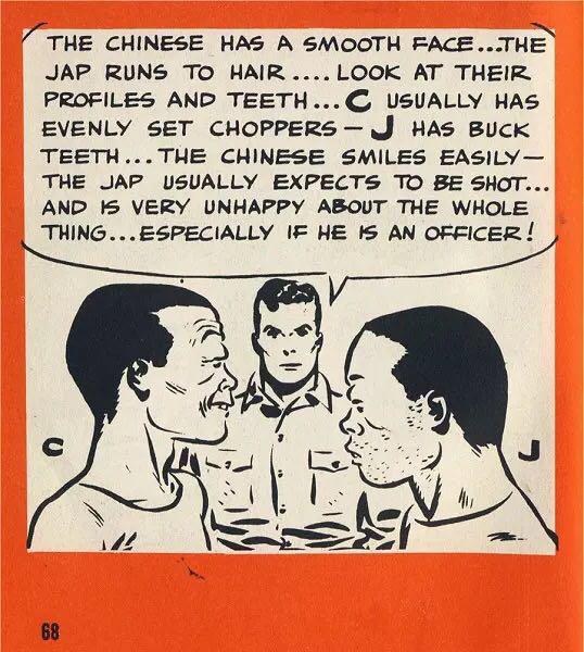这本小册子一共有75页,由漫画家Milton Caniff所著。采用了十分简单的方式,描述了中国人与日本人包括长相在内的特征和区别。在册子扉页,一名军官向大兵瑞恩发问:“嘿,瑞恩,你已经在中国呆了很长时间了。。所以你来说说日本人长得和我们的东方同盟军有什么不一样吧!