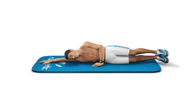仰卧屈膝呈九十度,腹部发力,双手并拢前伸至肩胛下角离开地面,放松还原。