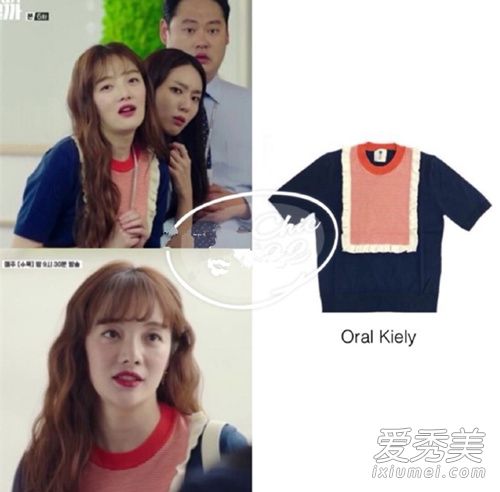 即使是指简单的t恤,奉科长也要穿出少女感才行!各种颜色都要有一款才行!穿背带裤时搭配的橘粉色短袖,出自品牌emis,韩国新晋的一个时装品牌,秀智、乔妹、孔孝真等明星都穿,火的程度可以想象,同款可以get一下呢。