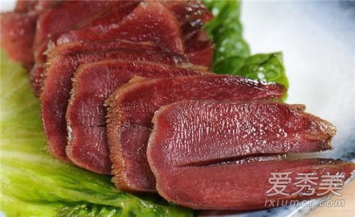 3.煮制:锅架火上,把肉及腌味调料一起放锅内,下酱油和适量的水,旺火烧开,撇净浮沫,小火焖煮约1.5个小时以上,至肉达到八成熟时捞出,晾凉。