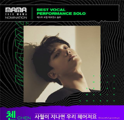 “2019MAMA”EXO入围最佳男团候补&最佳男团舞蹈表演奖候补,伯贤入围最佳男SOLO候补,金钟大入围了最佳歌唱表演SOLO候补。此外,2019MAMA投票通道将于韩国时间今天晚上6点正式开启。