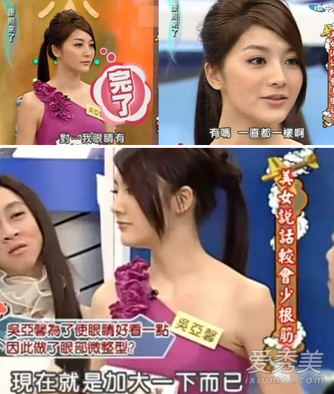 吴亚馨被网友挖出的整形前后。吴亚馨被小S逼问双眼皮,小S:现在看起来好像不一样了诶。吴亚馨:其实我以前是双眼皮,但是小小的,现在加大了一下而已。